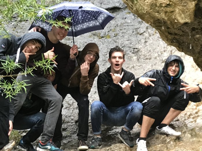 “Once we had arrived in front of the cliff, all the students and teachers were struck by the beauty of the landscape. Indeed, whenever it rains, the water coming out of the cliff falls on a huge brown rock and pours into a small hole in the gravels. It was so class and amazing !”